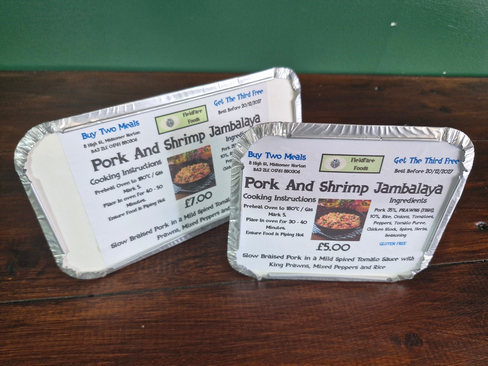 Ingredients – (Allergens in Bold) Pork 30%, PRAWNS (FISH) 10%, Rice, Onions, Tomatoes, Peppers, Tomato Puree, Spices, Herbs