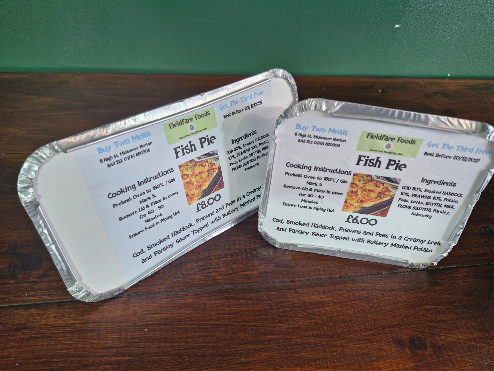 Ingredients – (Allergens in Bold) COD 30%, Smoked HADDOCK 10%, PRAWNS 10%, Potato, Peas, Leeks, BUTTER, MILK, FLOUR (GLUTEN). Parsley, Seasoning